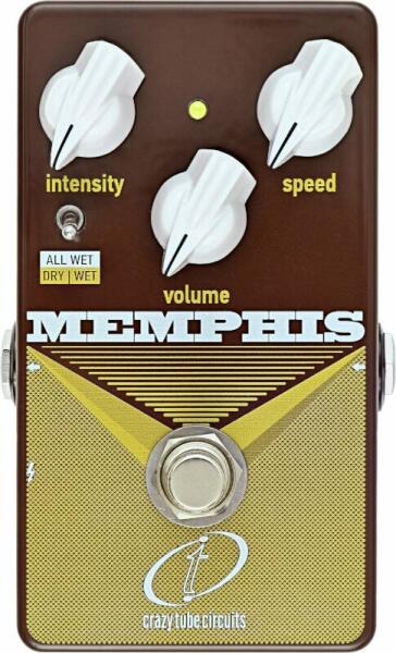 Aceasta este o traducere automată generată de un software:Memphis Vibrato a fost conceput ca „fratele mai mic al lui Killer V. O mulțime de clienți au cerut o pedală de vibrato asemănătoare unui amplificator cu schimbare de înaltă, fără secțiunea de antrenare și au livrat. Dispune de toate LFO analogice și de un circuit de schimbare a înălțimii în 2 trepte, fidel celui original, alimentat de la un multiplicator de tensiune intern pentru un spațiu ridicat și un răspuns dinamic îmbunătățit. Un preamplificator corect pentru perioada curată, cu un boost de până la 20 db, vă duce înapoi la sfârșitul anilor 50 / începutul anilor 60. Cu butoanele de intensitate și viteză puteți adăuga o strălucire subtilă sau o imagine acustică 3D pronunțată și o senzație muzicală cu efect de vibrato plăcut pentru urechi pentru sunete instantanee clasice Lonnie Mack / Robert Ward! Comutatorul comutator ALL WET – DRY / WET selectează între semnalul modulat 100% sau plasează semnalul uscat nemodulat în paralel cu semnalul modulat. Această din urmă configurație a fost găsită în unele dintre amplificatoarele originale prin intrări „stereo și produce sunete vârtej de fazer / vibrație.