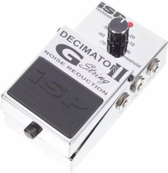 Aceasta este o traducere automată generată de un software: ISP Technologies introduce pedala Decimator II G String Noise Reduction, a doua generație a pedalelor Decimator . Pedala este foarte ușor de utilizat, pur și simplu conectați-o la capătul lanțului pedalelor existente sau în bucla de efecte a amplificatorului pentru a șterge zgomotul prezent la intrarea amplificatorului, precum și zgomotul în secțiunea amplificatorului și în fata amplificatorului. Conectați chitara la intrarea efectului Guitar IN și la ieșirea Guitar OUT la intrarea amplificatorului. Pedala poate fi de asemenea folosită într-o buclă, apoi utilizați intrarea DEC IN și ieșirea DEC OUT pentru a returna bucla. Pedala oferă un control lin al pragului. Impedanță de intrare: 500 K ohmi - nivel maxim de intrare: + 12 dB - suprimare efectivă a zgomotului: mai mare de 60 dB - interval dinamic: mai mare de 100 dB - distorsiune armonică totală: 0,05%. Alimentat de o baterie sau un adaptor DC de 9 V care nu este inclus în pachet. Consumul de energie: 35 mA. Pedala se află într-o construcție metalică durabilă. Dimensiunile pedalei: 6,9 x 5,8 x 12,7 cm. Țara de origine: SUA Culoare: Chrome.