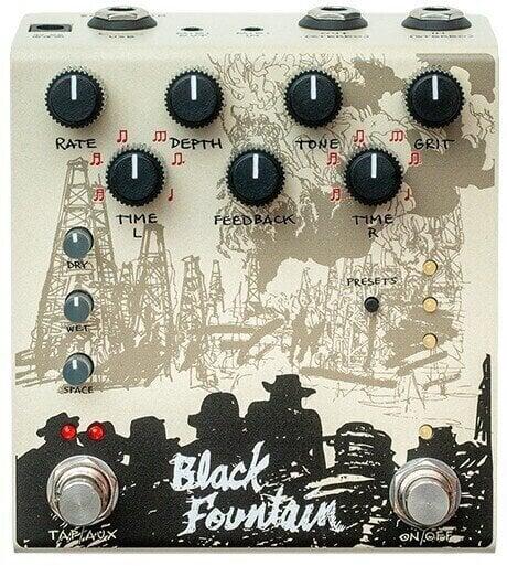 Aceasta este o traducere automată generată de un software:Black Fountain este o pedală avansată de întârziere cu ulei, care combină tonuri calde, modulate și ușor murdare pentru diferite efecte de delay, cum ar fi refren, dublare, slapback și întârzieri ritmice. Oferă personalizare pentru modulație, ton, grit, timpi de întârziere, feedback și sunet mono/stereo. Caracteristicile sale includ: Intrări/ieșiri stereo cu trecere uscată analogică Trasee sau comutare de ocolire reală Stocare prestabilită Controlul expresiei pentru fiecare buton Compatibilitate MIDI, inclusiv sincronizarea ceasului Prezentare generală a controalelor: Rată și adâncime : Reglați viteza și intensitatea modulației. Ton : Modelează căldura repetărilor. Grit : Setați intensitatea conducerii în repetări. Ora L și Timpul R : Reglați timpii de întârziere stânga/dreapta cu șase subdiviziuni prin comutatorul de picior Tap. Feedback : Suma generală repetată. Uscat/Umed : echilibrează volumele semnalului uscat și întârziat. Spaţiu : Reglați lățimea mono/stereo și adăugați difuzie. Atingeți/Comutator Aux : Atingeți tempo, țineți apăsat pentru feedback infinit sau comutați presetări. Bypass la atingere moale : Zgomot minim de comutare.